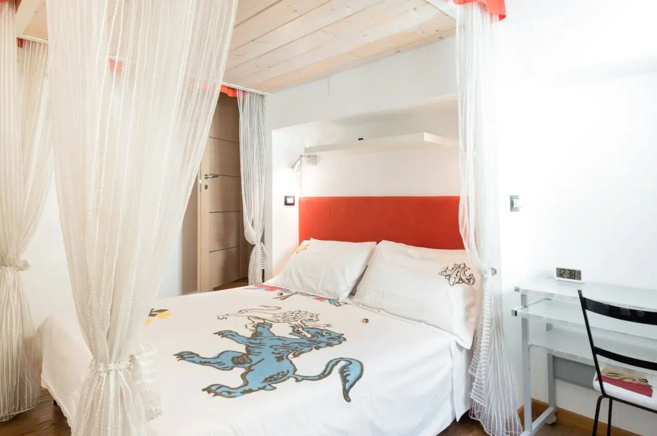 If you’re looking for an Airbnb in Florence with a dose of renaissance style, then this apartment is for you. This renaissance apartment has many trinkets and treasures that embody the best of the city’s history, including artfully decorated living and cooking spaces that burst with color. The apartment features a colorful living room with an indoor fireplace, a day bed, and a TV, there is a full kitchen with florentine gothic decoration, a full bedroom, and two full bathrooms. This apartment is in the historic center of Florence, within walking distance of major attractions, and has views of the Duomo.