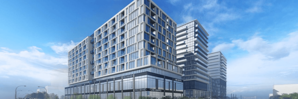 The multi-phase community is made up of four blocks, the first of which is now approved for 209 housing units, up from the 206 previously proposed in 2021, and 10 storeys, down from the original 12. Behind the height reduction is the elimination of 43,109 sq. ft of office space nixed in response to evolving office needs in the City. Other changes include slightly reduced vehicle and bicycle parking, as well as the removal of a publicly accessible open space (POPS).
