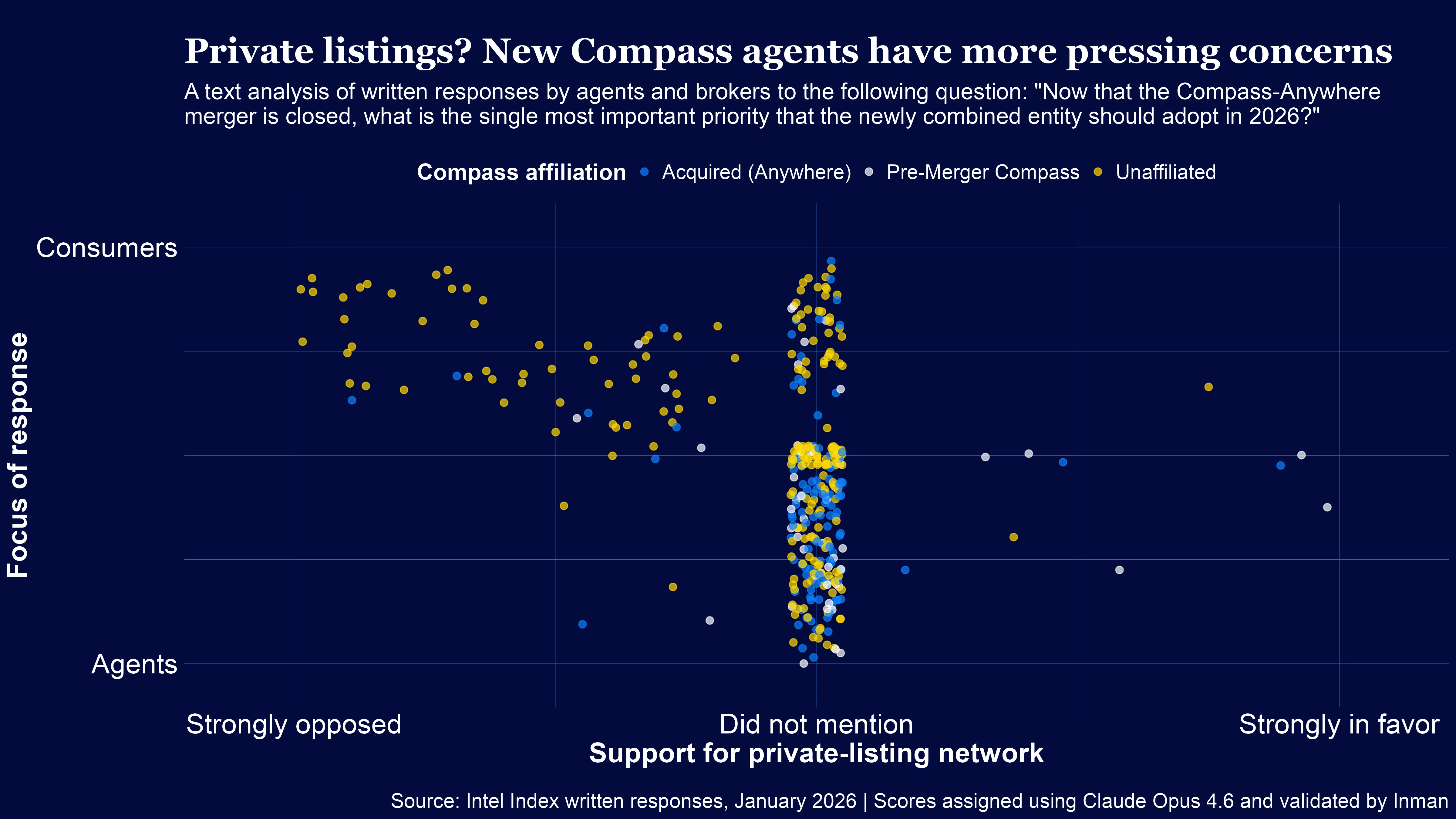 And while some former Anywhere agents did volunteer concerns about Compass’ direction on private listings, they were far less likely than outsiders to offer such negative critiques.