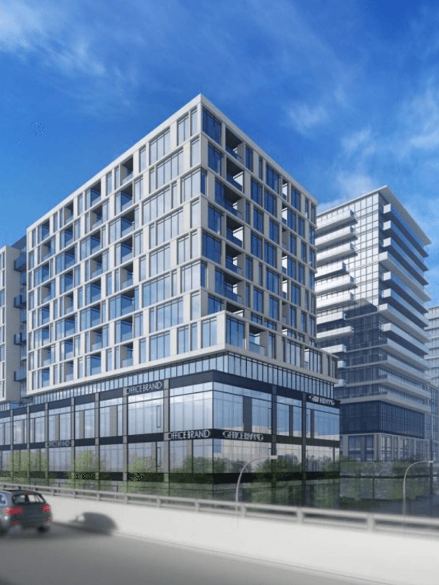 Block 1, which is being developed by Greenwin and Tridel, and designed by Kirkor Architects, is located on the western portion of the site, edging onto Allen Road and Wilson Avenue and spanning 42,518 sq. ft. This section of the master-planned community is envisioned as a mixed-use development, alongside Block 2, with the rest being primarily residential buildings.