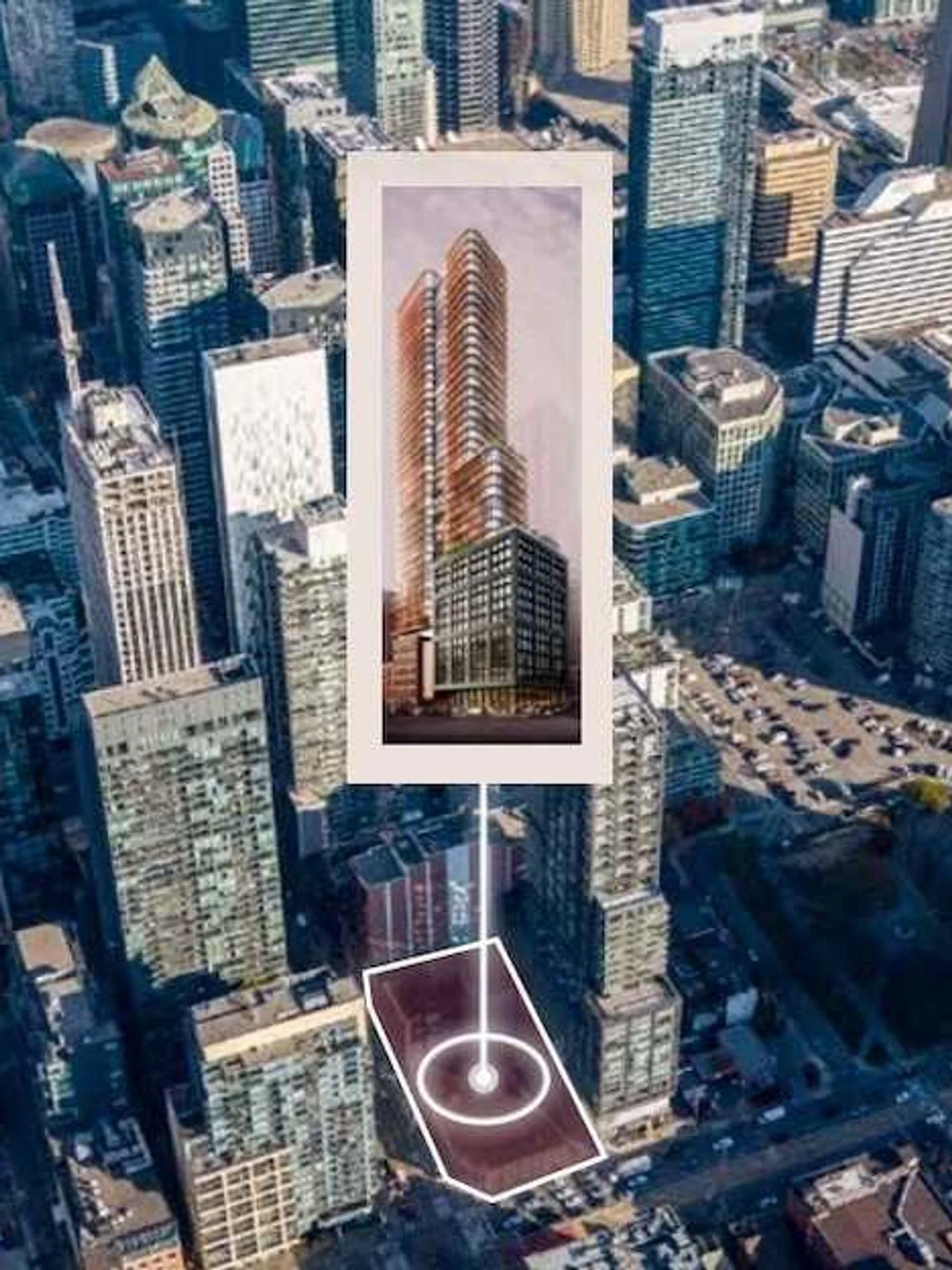 “The scale of the project, along with its location at a highly coveted intersection, positions the site well for a residential condominium or purpose-built rental offering, with flexibility to incorporate hotel uses within a redevelopment,” said JLL in its sale brochure. “The contemplated development is currently subject to Site Plan Approval which has been advanced, allowing a future owner to refine project specifications as it completes the remainder of the entitlement process, while also collecting holding income from the existing retail and office buildings.”
