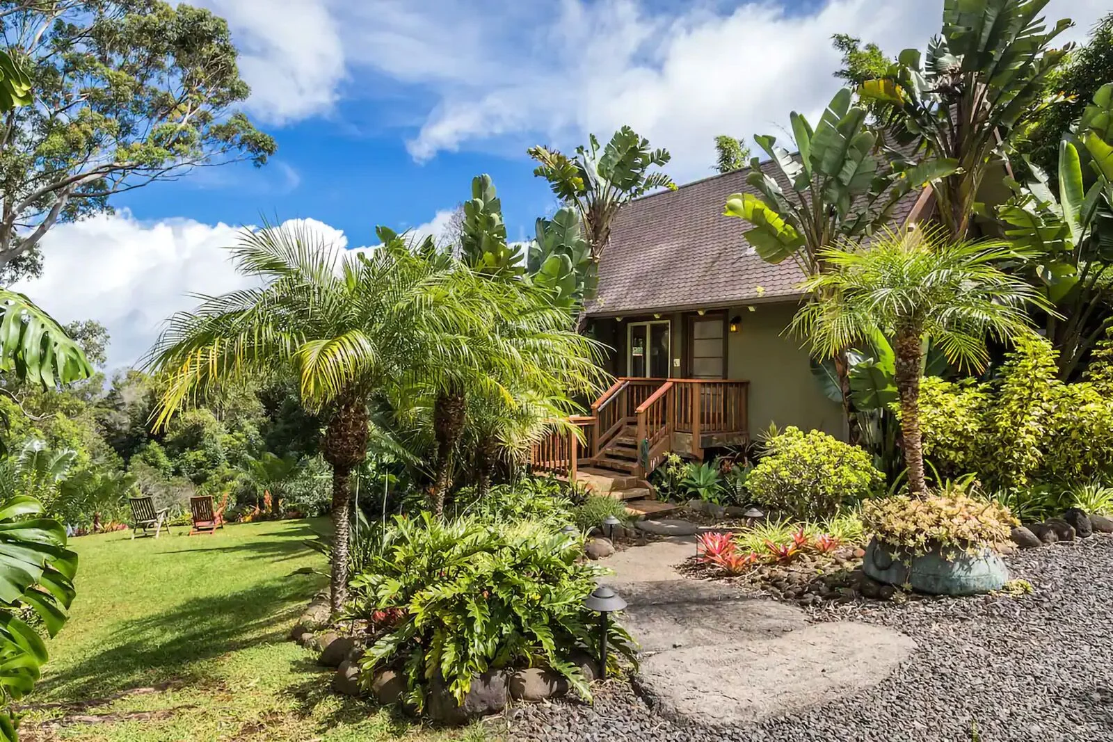Although you’d need to travel half an hour or so to the ocean for whale spotting, this property in Olinda (around two miles southeast of Makawao) is a haven for nature lovers. It’s also a top 10 percent Airbnb listing. The one-bedroom cottage has a deck with a soaking tub and killer views over the island. The host promises an elegant and laid-back island stay.
