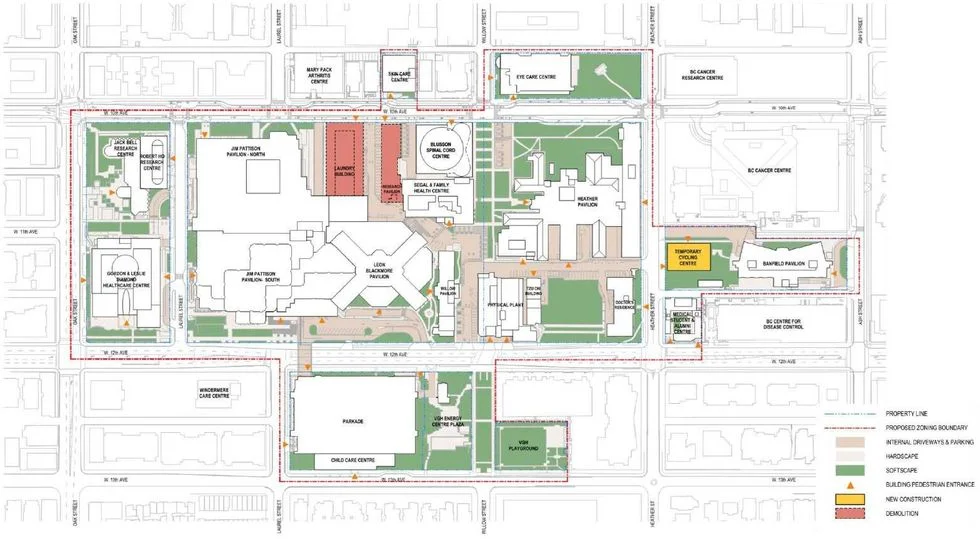 In a press release, Vancouver Coast Health (VCH) said the rezoning application “will enable the hospital campus to grow sustainability and continue to meet the evolving needs of patients, clients, staff, medical staff, and partners from across the province” and called it “an important first step in establishing a long-term planning framework for how the hospital campus could evolve to meet growing health-care demands and care delivery needs.”