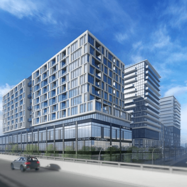 Block 1, which is being developed by Greenwin and Tridel, and designed by Kirkor Architects, is located on the western portion of the site, edging onto Allen Road and Wilson Avenue and spanning 42,518 sq. ft. This section of the master-planned community is envisioned as a mixed-use development, alongside Block 2, with the rest being primarily residential buildings.